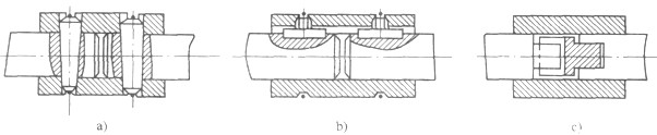 種結構型式。其結構簡,徑向尺寸小,但拆裝困難(要求兩中心軸線嚴格對準,不允許存在徑向及角度偏差),使用受到定限制。其中圖a結構雖簡單實用,但不可靠。圖b結構簡單,加工和安裝容易,但消除周向間隙不可靠,且易松動。圖C字滑塊聯軸器相連,滑塊的配研,這種結構無法保證完個消除傳動間隙。